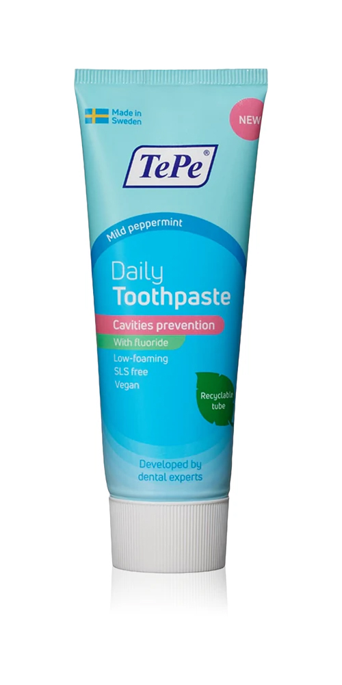 Jemná peprmintová příchuť nezpůsobuje potřebu vyplachovat ústa po čištění a má lepší dopad na chuťové pohárky.